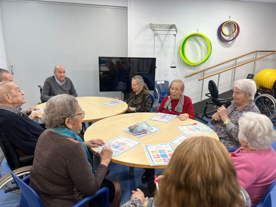 La proposta ha combinat música, records i diversió. En lloc de números, els nostres residents havien d’identificar cançons conegudes que anaven sonant. A mesura que reconeixien la melodia, marcaven la seva targeta amb molta il·lusió. Hem escoltat temes de tota la vida, que han despertat somriures, converses i fins i tot alguna cantarella espontània.