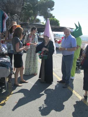 FELIÇ DIA DE SANT JORDI!! Aquest matí la princessa i el drac de l'Onada l'Ampolla acompanyats per tota la cort han anat al mercat a repartir roses i punts de llibre. Alguns s'han quedat ben estranyats de veure que el Drac no és tan ferotge com ens el presenten, a la nostra dolça princessa no li han faltat pretendents, i que dir de la cort? Hem rigut molt en veure la cara d'alguns vianants en veure tan meravellosa estampa! Lamentem que algúns us hagueu quedat sense rosa i/o punt de llibre, prometem que el proper Sant Jordi vindrem més carregats!! Ara ens queda l'explicació de la llegenda als nens de la llar d'infants! Que acabeu de passar una gran diada de Sant Jordi!