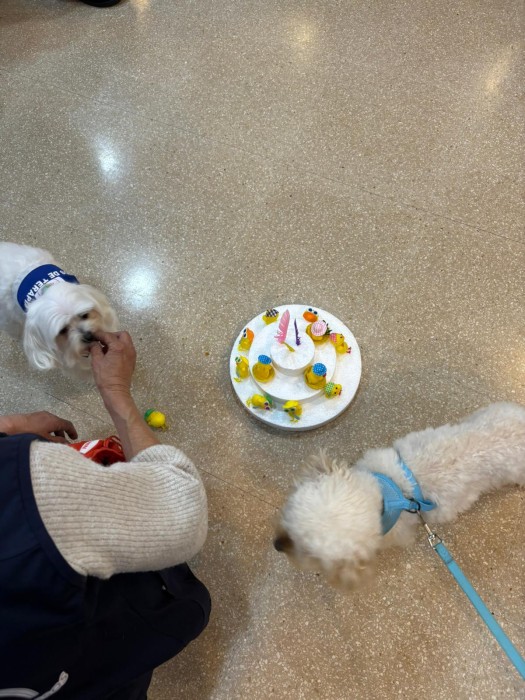 Avui hem realitzat taller de caninoterapia i hem treballat amb els gossets a fer una mona i recollir ous de pasqua que ja s'apropa!