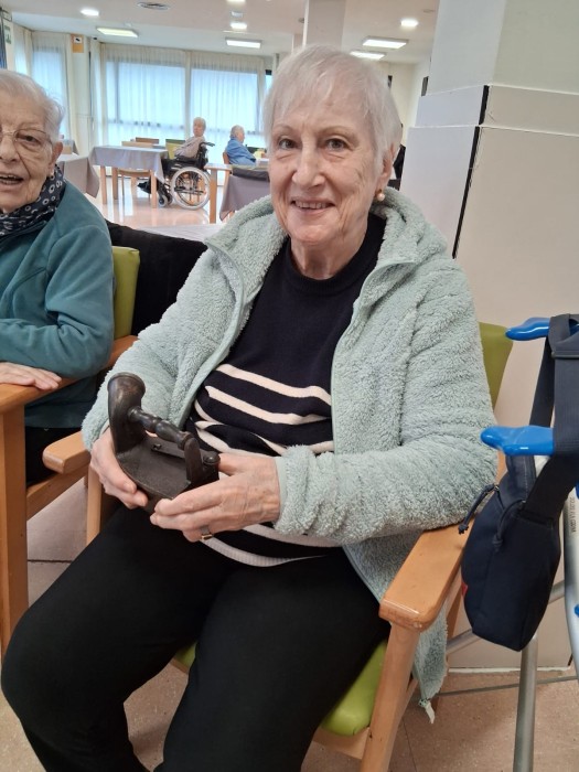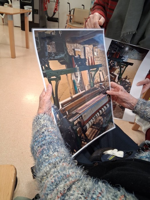 Venen del museu amb peces de tèxtil per fer reminiscència i recordar amb els avis i àvies.