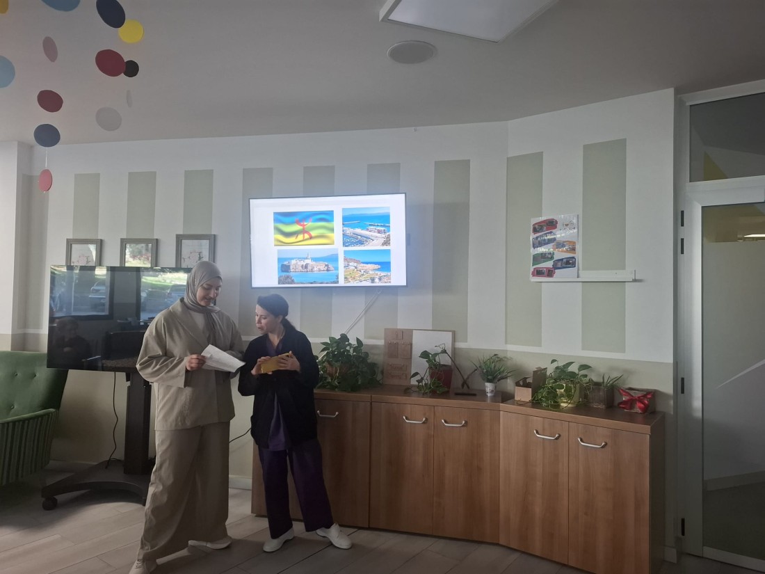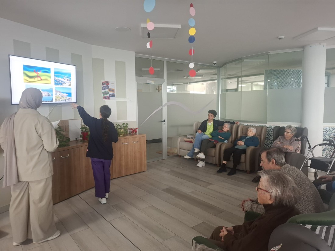 Avui la Aya la Noia de pràctiques que ha estat aquí al centre amb nosaltres ha fet el Viatgem des del sofà al seu país de naixement, ens a ensenyat els seus costums típics, festes... Hem menjat galetes típiques del Marroc i ens ho hem passat molt bé