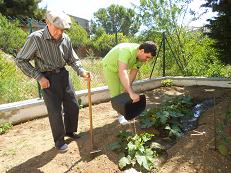 Què us pensaveu....? que això no arrelaria?.... Pos mireu quin goig de carabasseres, bajoqueres, margaridera, i quins llauradors més templats, com reguen l'hort, el cuiden..... i ells dominen les males herves i no a la inversa, com podeu vore.