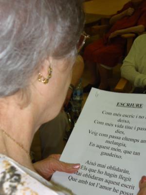 El passat dijous, vam homenatjar a la nostra Antonia Rull. A banda de fer-la una de les "Protagonistes" del mes, també vam fer una lectura de les seves poesies, ja que en la última etapa de la seva vida, va començar a escriure de manera autodidacta, arribant a fer 12 llibres. Penseu que als 60 anys, va apendre a fer servir l'ordinador per tenir-les totes ben guardades!! Moltes felicitats Antonia per la teva creativitat.