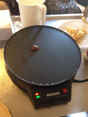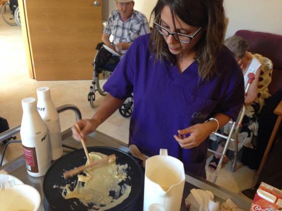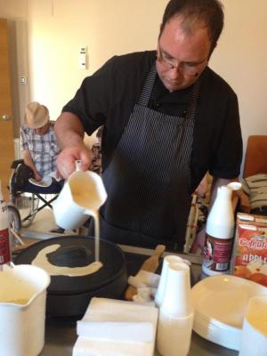 Ahi al nostre taller de cuina vam elaborar Creps!!!!!!vam parlar sobre els seus origens, els mil ingredients que podiem possar apart del chocolate, i lo bonic va ser que els vam preparar davant de ells on tots van disfrutar del taller.