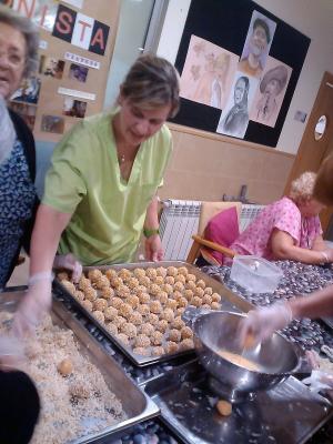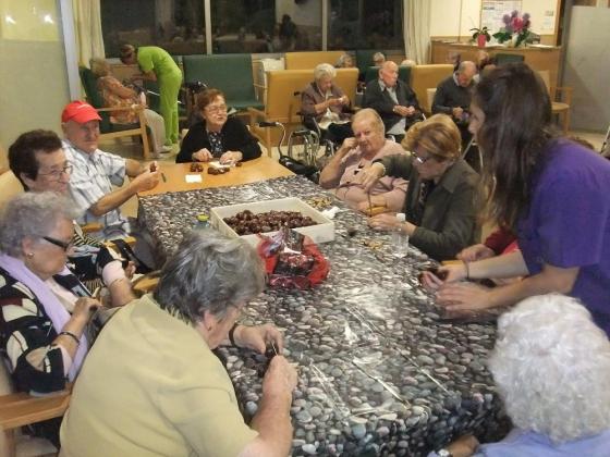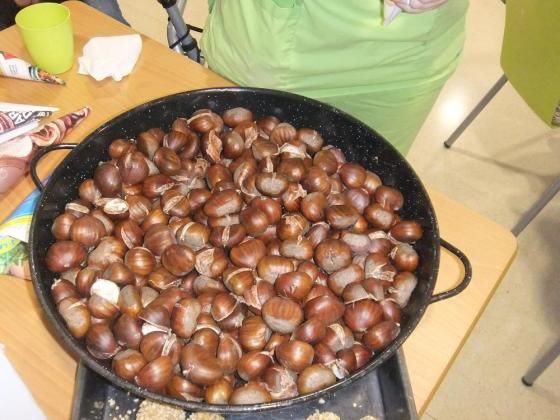 Aquesta setmana els avis i les àvies de l'Onada Alcanar hem estat preparant la festa de la Castanyada en molt d'entusiasme. Ens vam repartir la feina per dies, un dia vam preparar les paperines per les castanyes, l'altre vam fer el tallet a les castanyes per a què es torressin bé, un altre dia vàrem fer els panellets..... Finalment el divendres per la tarde va venir la senyora castanyera i vam passar una tarde molt dolceta: vam menjar castanyes, panelletes i un coc de poma que ens van portar les voluntaries. Vam acabar la festa cantant cançons tradicionals i ballant. Va ser genial!!