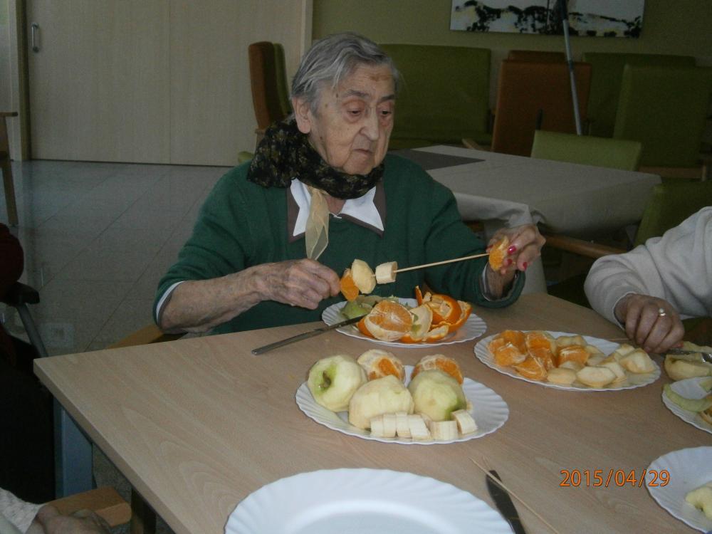 Ja comença a fer bon temps, i a Mont-roig comencem a preparar berenars a base de fruita!! L'altre dia vam berenar uns "pintxos" de fruita variada que van ser la delícia dels nostres residents!!