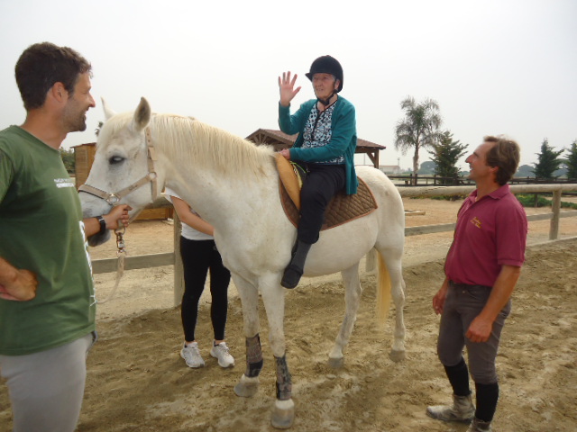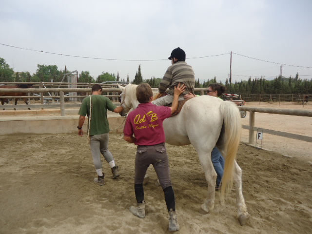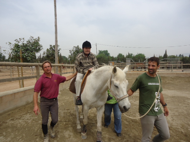 Aquest mes de maig vam començar les sesssions d'equinoteràpia. El primer dia va servir per tenir contacte amb l'entorn i amb els cavalls, però després, tots a muntar. Poc a poc, els residents van adquirint tolerància sobre el cavall, es senten més segurs i deixen la por enrere per gaudir amb l'animal, alhora que fan diferents exercicis.