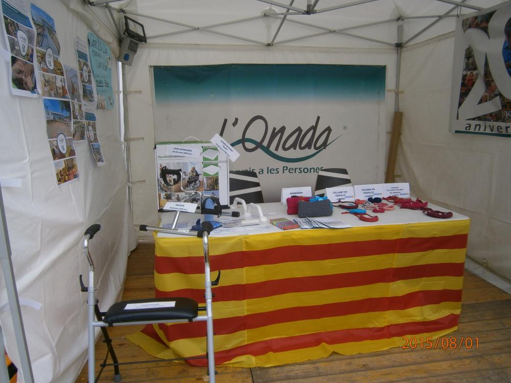 Aquest passat cap de setmana es va celebrar la Fira Multisectorial de Mont-roig del Camp, i L'Onada no hi podia faltar!! Les nostres àvies van estar treballant de valent durant molts dies per tenir a punt la senyera, les pulseres, collarets i monederos de trapillo que vam posar a la venda per comançar a recaudar diners per La Marató de TV3. A més, al stand vam exposar ajudes tècniques per tal de donar a conèixer aquestes eines als assistents.