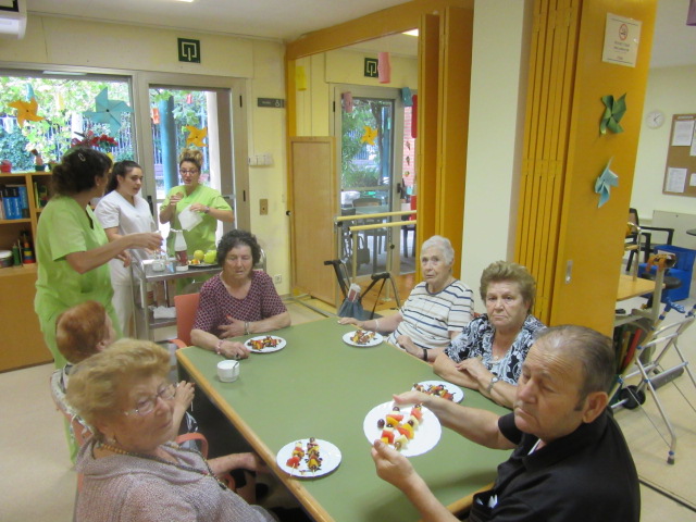 Per fer passar la calor d'aquests dies, tots els avis i àvies del centre hem decidit fer un berenar especial a base de fruites.