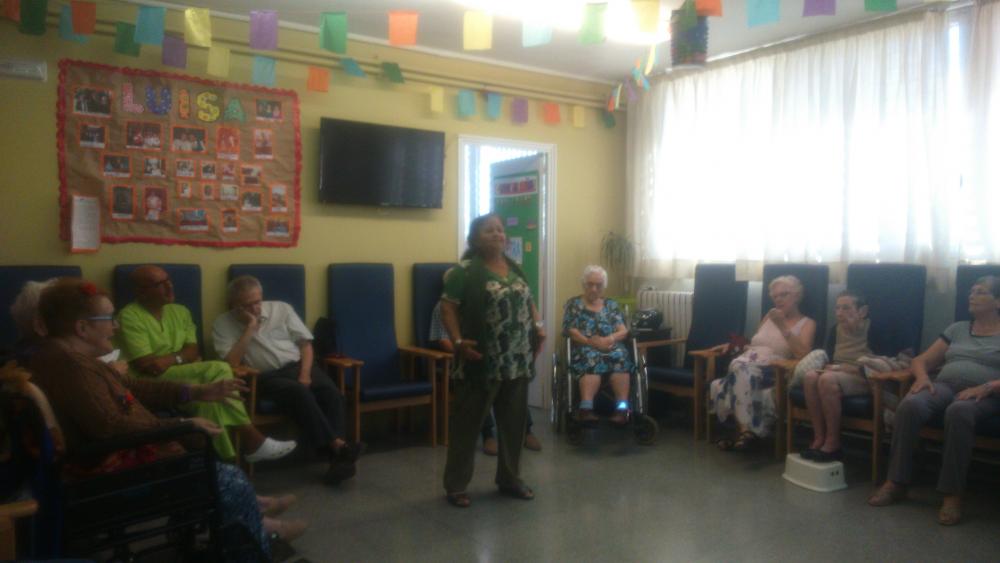El mes d'agost comptem amb la col·laboració de la senyora María Godoy, representant del grup de Dones Sàvies de Sant Cosme, per realitzar un taller de musicoteràpia. Cantem cançons típiques i la senyora María ens va animar amb una sèrie de fandanguillos. Ens ho passem genial!