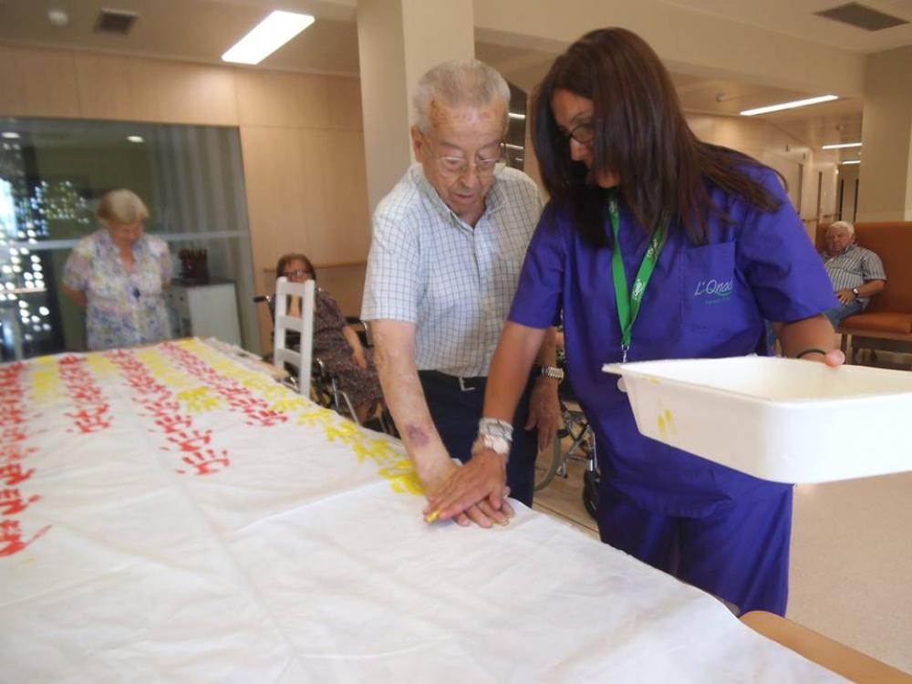L'estem fent entre tots els usuaris, residents, familiars, amics... Ens agradaria que els veïns del poble també hi col·laboréssiu, així que tothom qui en tingui ganes pot passar per la residència i desar-hi la seva empremta.