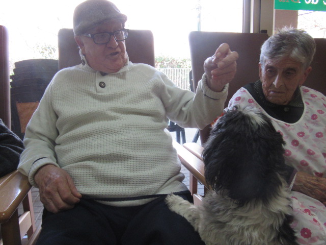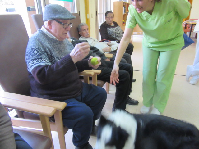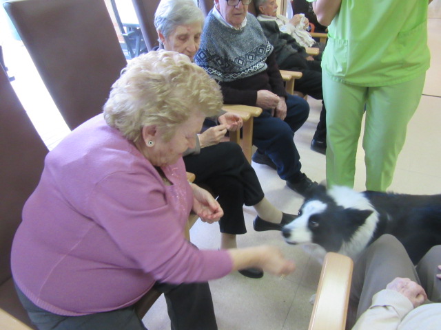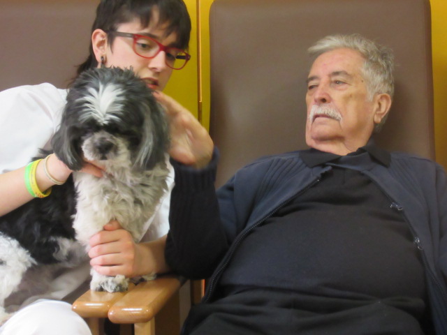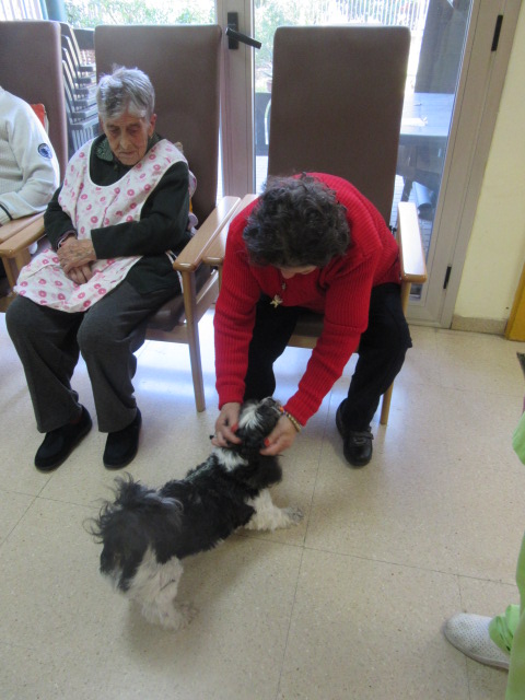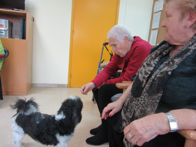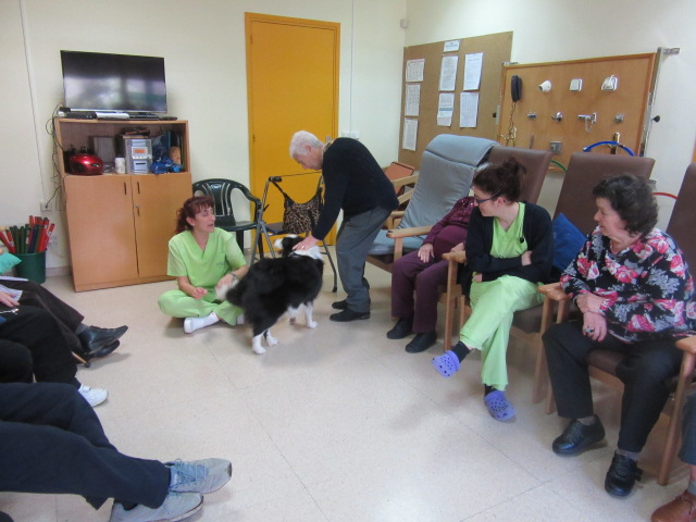 Al Centre de Dia Besòs-Mina s'ha començat a provar la Teràpia Assistida amb Gossos. Només ho hem realitzat dues vegades però veient que les reaccions dels usuaris han estat molt positives, volem programar aquesta activitat de forma contínua al centre.