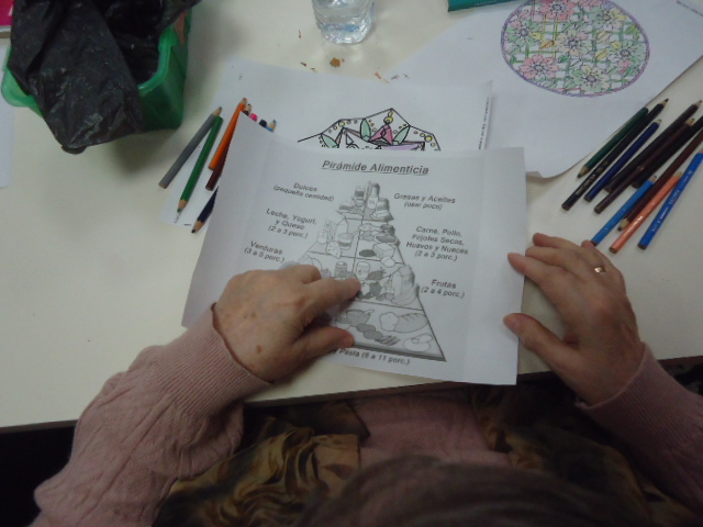 En un dels tallers sanitaris, una de les infermeres, va treballar amb els avis la piràmide dels aliments, elaborant un mural i comentant quina és la base d'una bona alimentació. Van aprendre molt amb aquest taller!