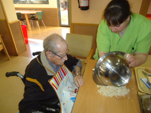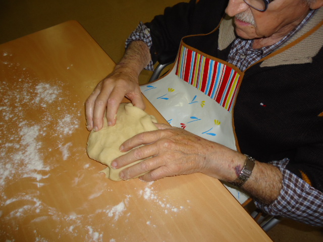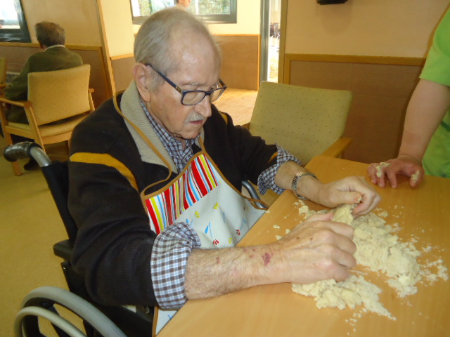 Potenciem la identitat del Pere, tota la vida ha treballat en una pastisseria molt coneguda de Reus i li vam proposar si voldria ensenyar-nos com feia ell les galetes de mantega. Ens va dir que si i aquest n'és el resultat. I quina oloreta més bona va quedar per tot el menjador!
