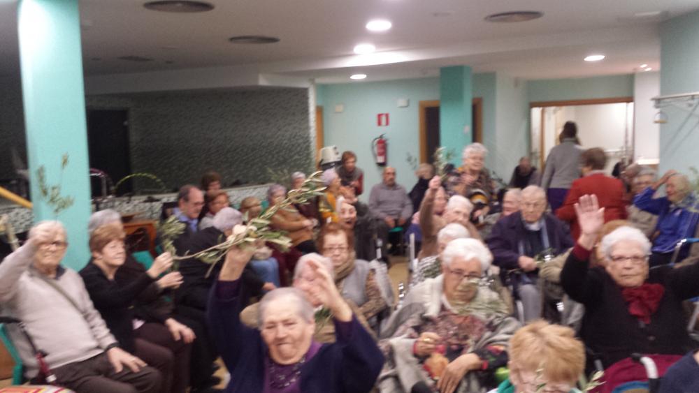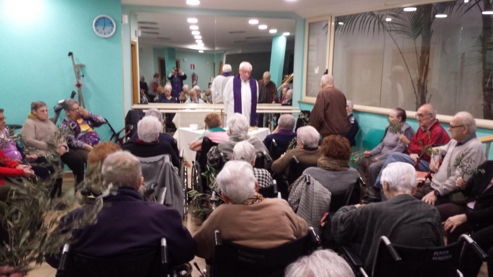 Aquest matí hem celebrat la Missa de Rams. Cadascú tenia el seu ramet d'olivera, que han alçat a l'aire i ha beneït el mossèn.