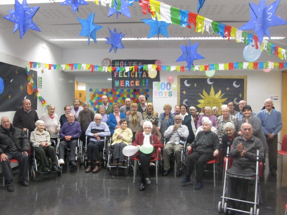 Dissabte 19 va ser l'aniversari de la Mercè Gispert, va cumplir 100 anys. I per celebrar aquest honor ahir vam fer una festa al centre.