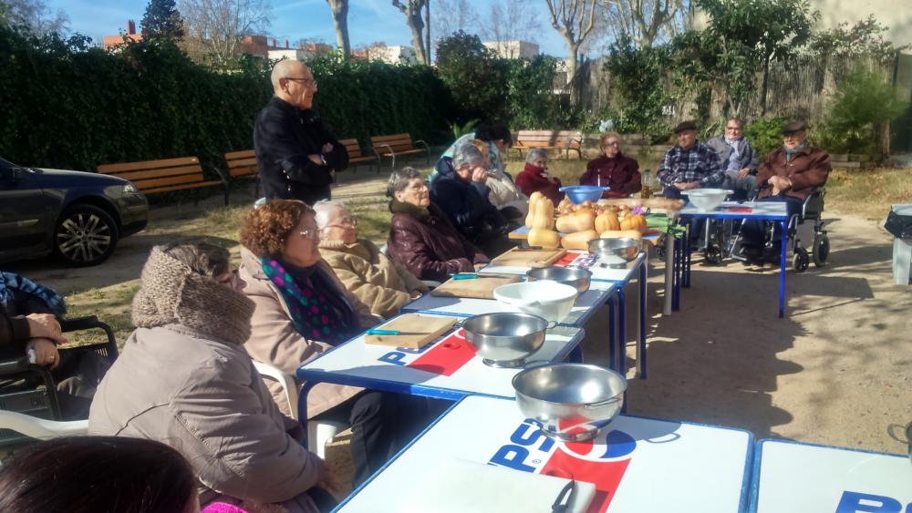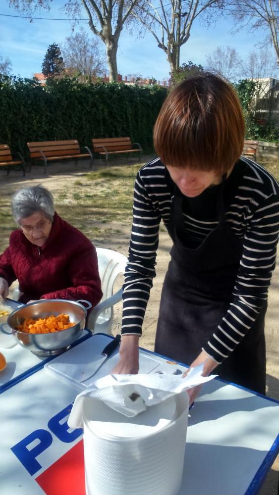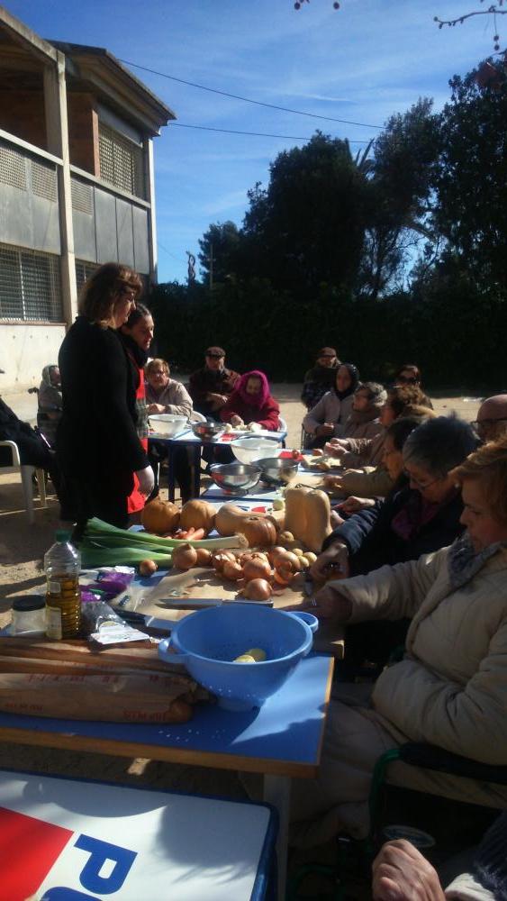 Aquesta vegada hem realitzat un taller d'alimentació saludable, amb la participació de dos nutricionistes de l'ajuntament del Prat i una tallerista cuinera. Com a espai d'intercanvi i reflexió, vam escollir el pati del centre. Al llarg del matí vam poder gaudir de l'elaboració d'una sopa de ceba, una sopa de farigola una crema de verdures i carbassa, i a més vam aprendre els beneficis de tots els aliments que incorporem al menú.