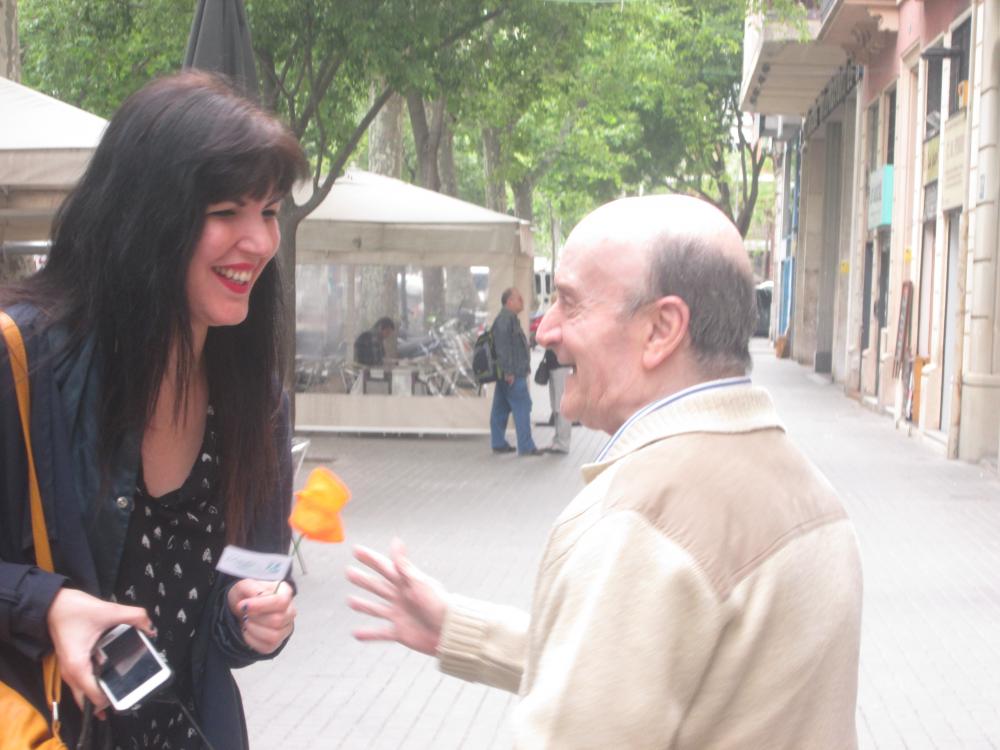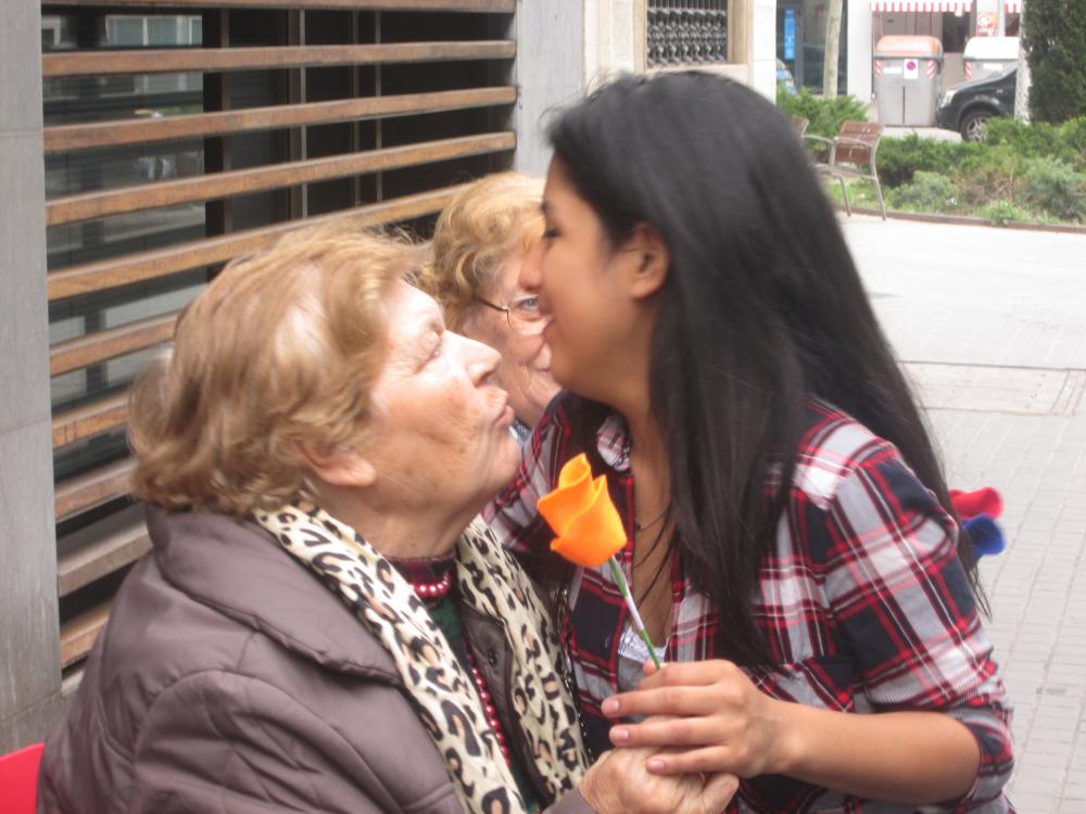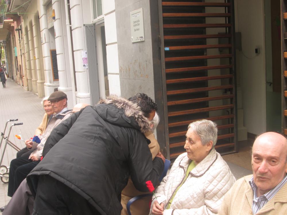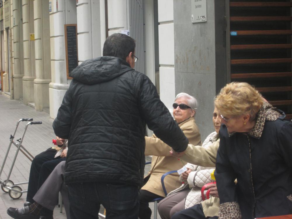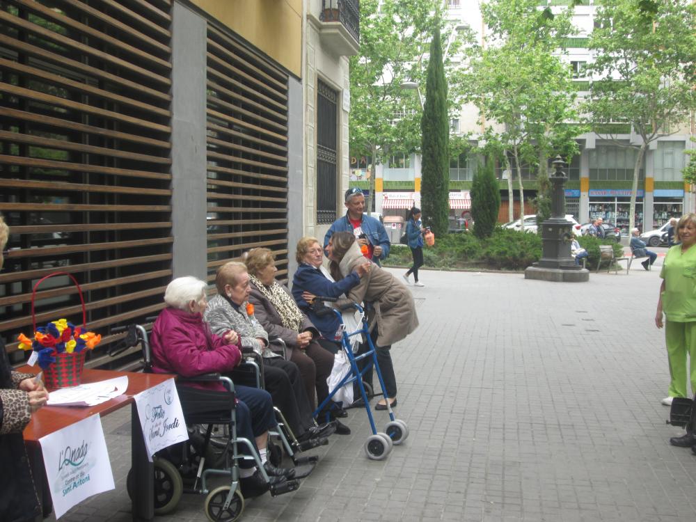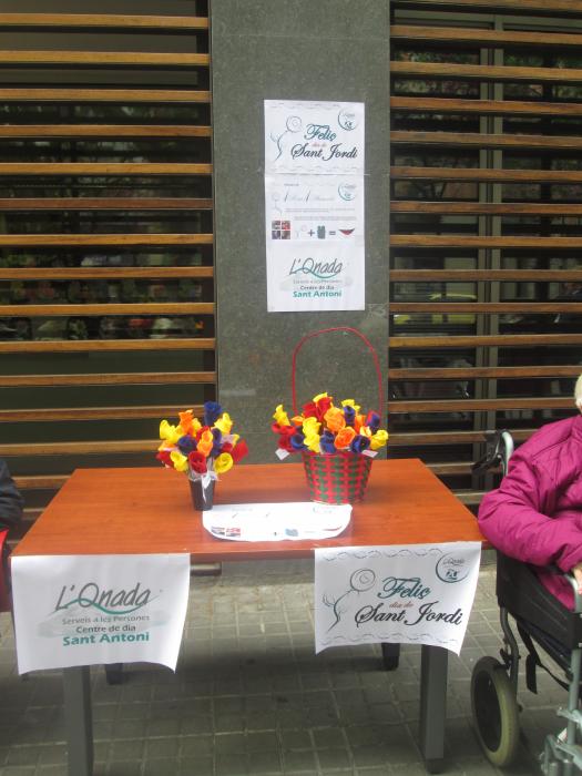 A Sant Antoni vam celebrar Sant Jordi sortint a repartir roses amb "una rosa, una abraçada", vam repartir totes les flors que havíem fet i vam aconseguir un munt de petons i abraçades.