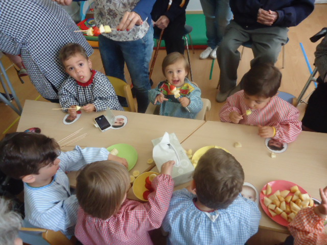 Alguns residents de l'Onada Riudoms hem visitat la llar d'infants l'Onada Bressol "Els Caragolins" de Maspujols i hem fet una activitat amb els nens: hem elaborat uns pintxos de fruita. Hem menjat tanta fruita que casi no dinem...Ens ha encantat compartir aquesta estona tan bonica amb ells. Esperem tornar-hi aviat i compartir més estones plegats.