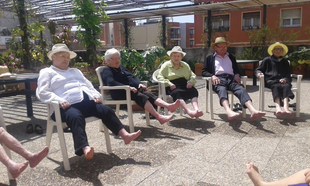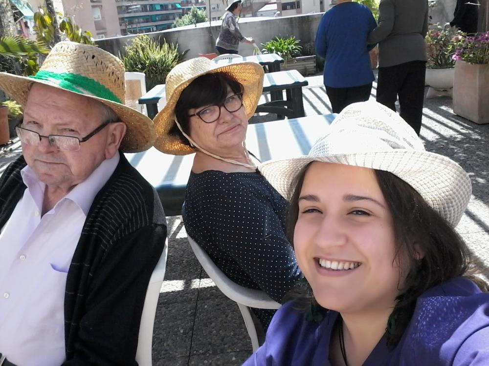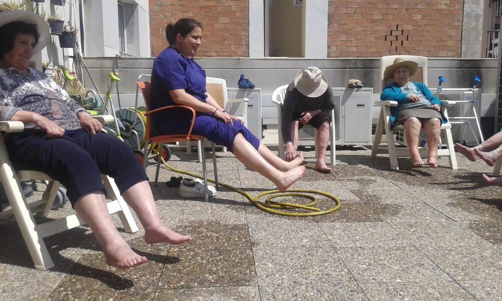 Aprofitant el bon temps hem sortit al nostre pati, amb barrets per protegir-nos del Sol! També hem realitzat un grup de peus utilitzant una manguera per refrescar-nos. Com gaudim!