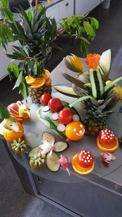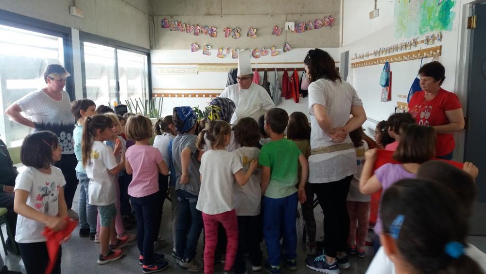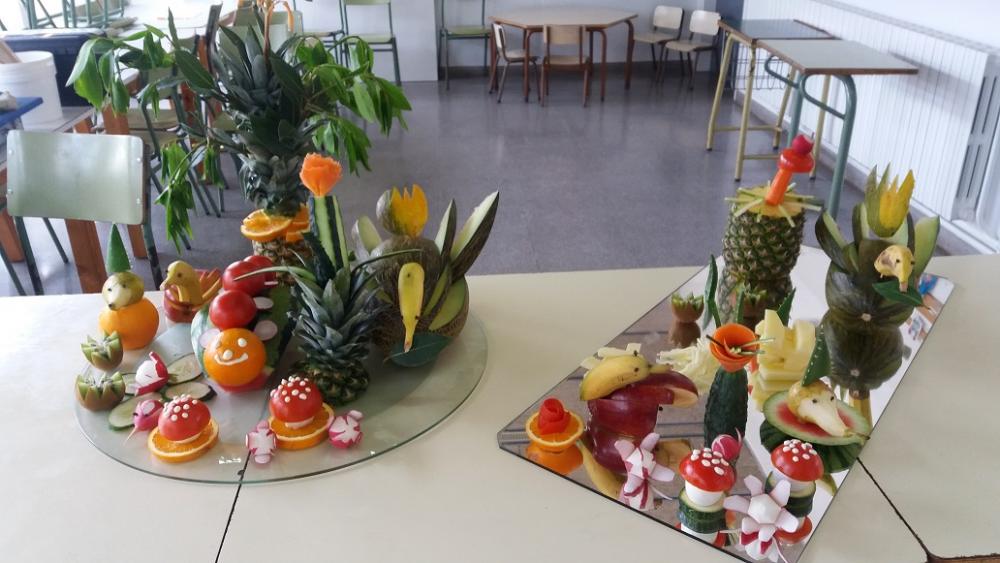 La setmana passada un grup de residents de L'Onada Alcanar i el cuiner del centre, Alfonso Cisneros, vam anar a l'escola del poble a fer un taller de cuina per als més petits. Alumnes, mestres i residents van gaudir veient com el cuiner transformava les fruites en animals i plantes de fantasia. Un goig poder contemplar com van gaudir amb l'espectacle gastronòmic.