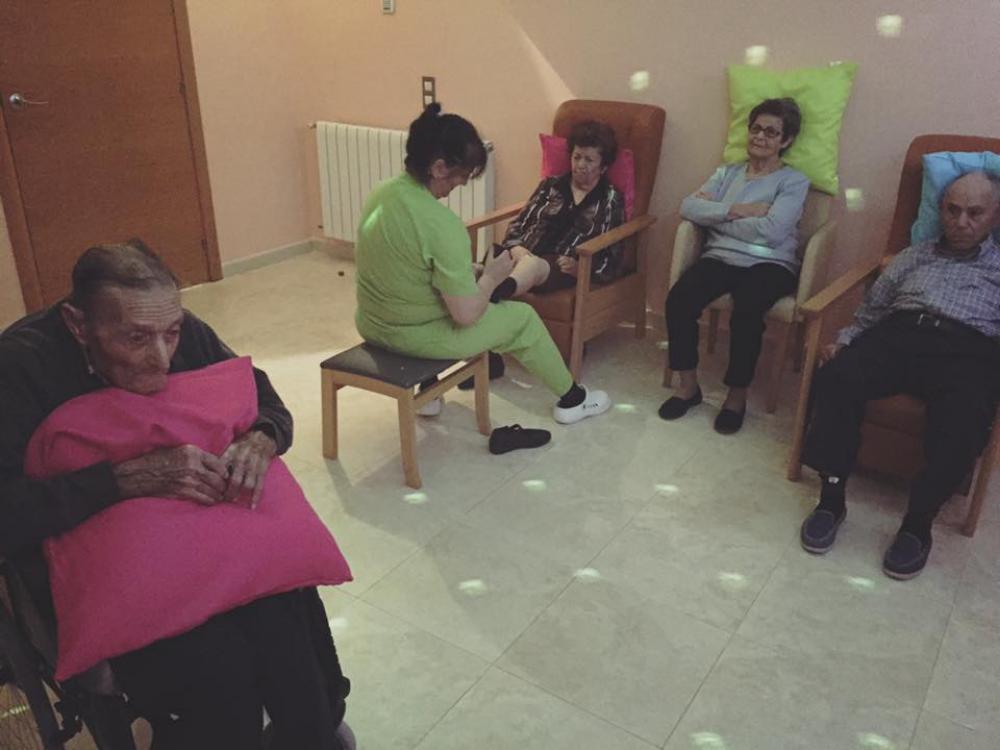 Ens trovem amb que una part dels residents, tot i ser partíceps i estar integrats amb la dinàmica del centre, no es poden implicar amb la seva totalitat a conseqüència de les seves capacitats cognitives; aquests residents són els que presenten un deteriorament cognitiu greu i que tenen unes necessitats més específiques. La seva capacitat de recepció de l’estimulació provinent de l’entorn està disminuïda, atès que estan més tancats a nivell sensorial, per la qual cosa havíem de trobar altres formes de relacionar-nos i fer-los sentir plaer i això es podia fer a través de la consciència del pròpi cos i de l’entorn.