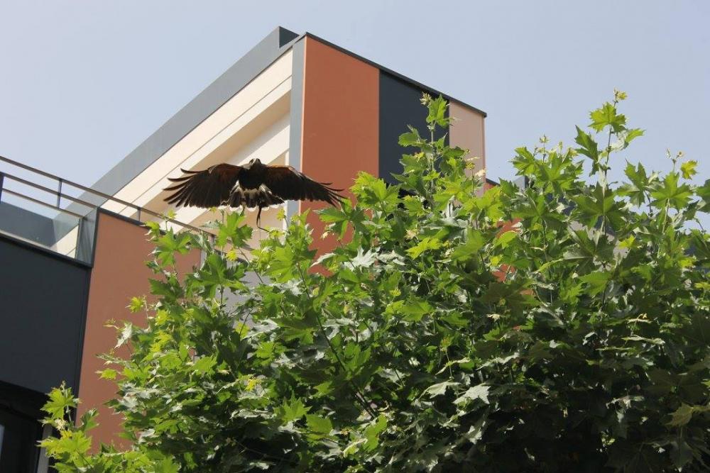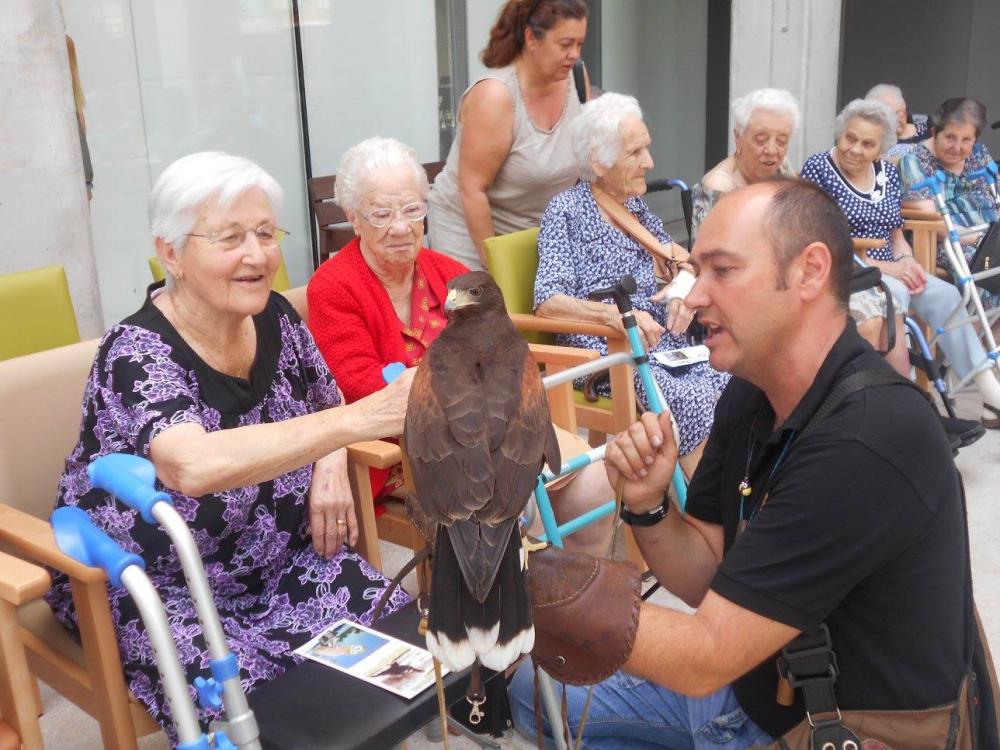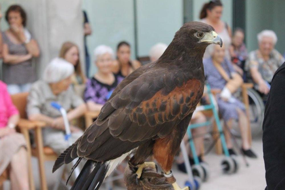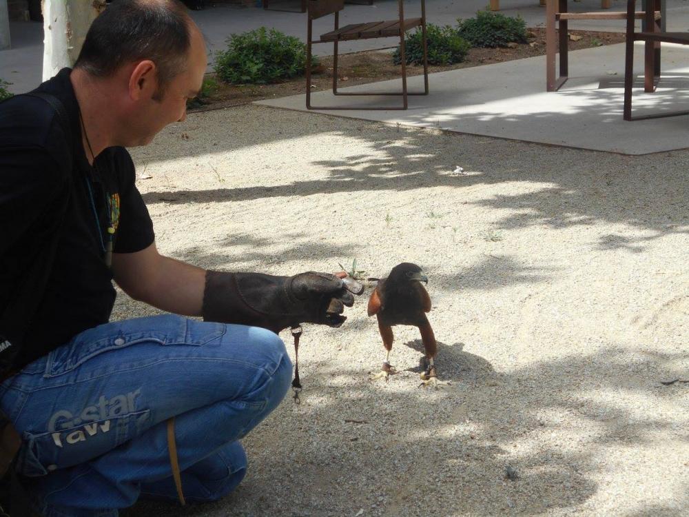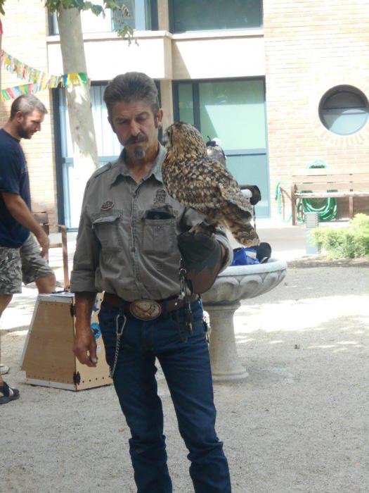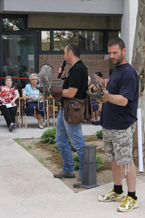 Un falcó, un xoriguer americà, un gran duc (Museo Bengalí) i una àliga que ens han portat membres de la Federació Catalana de Caça i de la Societat "Falconeria del Segle XXI" amb el president del Coto al capdavant.