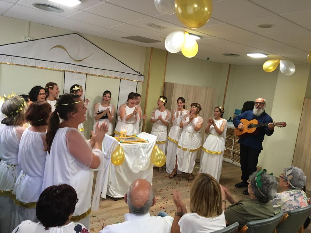 La benvinguda a la festa va ser realitzada per Antonio Olmedo, catedràtic d'Història de l'Art, que va fer una introducció als inicis de la Tàrraco Romana. Després es va celebrar una obra de teatre on vam poder gaudir de vàries actuacions musicals i de dansa ben diverses. La festa, que va comptar amb una alt grau d'assistència, va finalitzar amb l'actuació de l'Associació de Sacaires de Tarragona i amb un berenar molt complet.