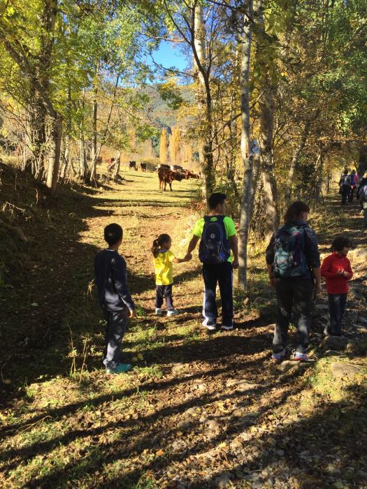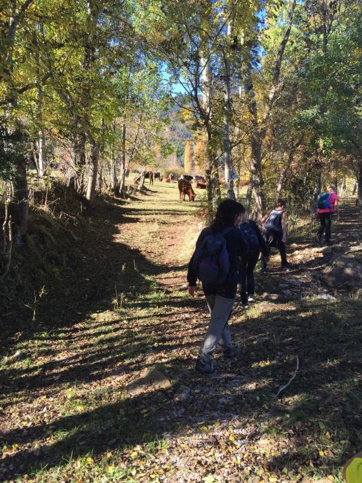 Un cop a Gósol, vam iniciar la nostra excursió cap al molí vell (antic molí fariner) i les fonts del Torrentsenta. Un recorregut circular de 8km apte per tota la família. Vam recórrer prats i camins ramaders sota un dia esplèndid de sol radiant a l’empara de la boscosa Serra del Verd.