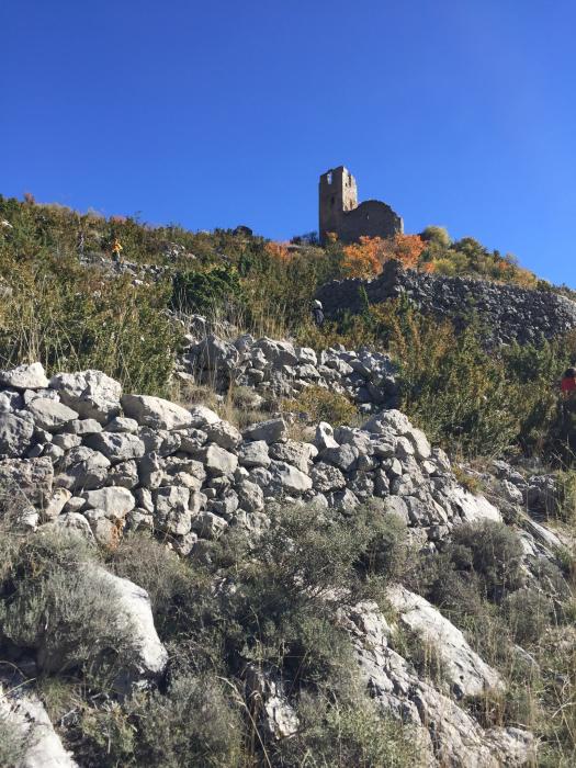 Després vam grimpar a les ruïnes del poble antic, agrupat al voltant del castell dalt d’un turó i des de la torre es va poder gaudir d’una bona panoràmica del Pedraforca. Un cop recobrat l’alè vam baixar al poble i vam coincidir amb la mostra gastronòmica del pèsol negre i un petit mercat agroalimentari amb productors del Parc Natural Cadí-Moixeró.