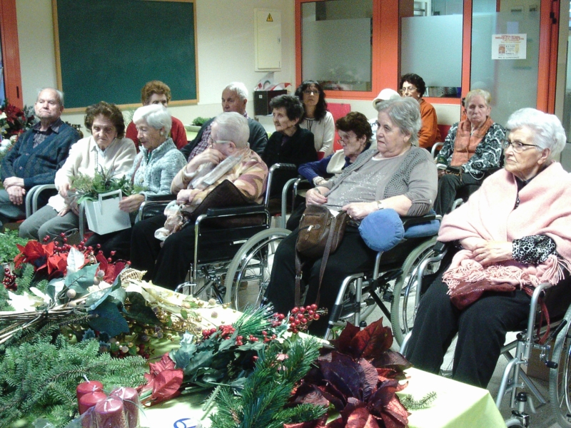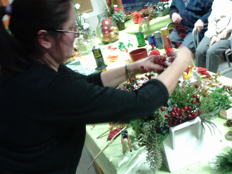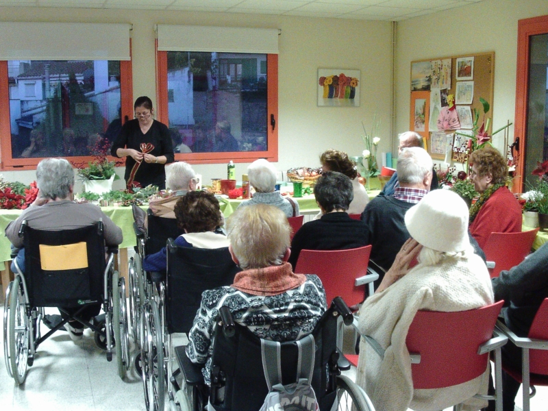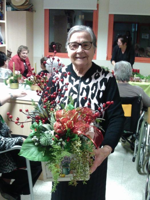La Sra. Dolors Claret, filla d'una de les nostres residents, ens ha fet per segon any consecutiu un taller de centres de Nadal. D'aquesta manera ens ha explicat diferents trucs i tècniques per a confeccionar tan centres naturals com artificials per adornar la casa durant les festes.