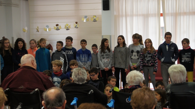 També han repartit entre tots els residents una felicitació de Nadal que han fet a l'escola i han recitat poemes i versos de nadal per a tots nosaltres.