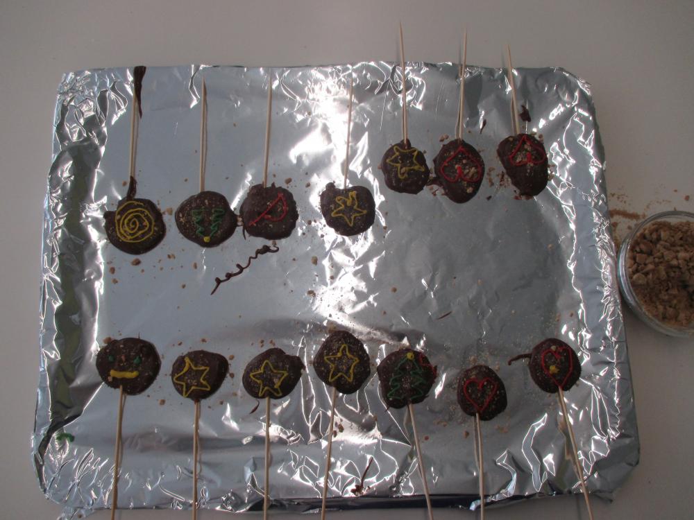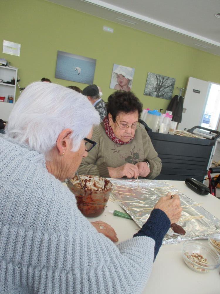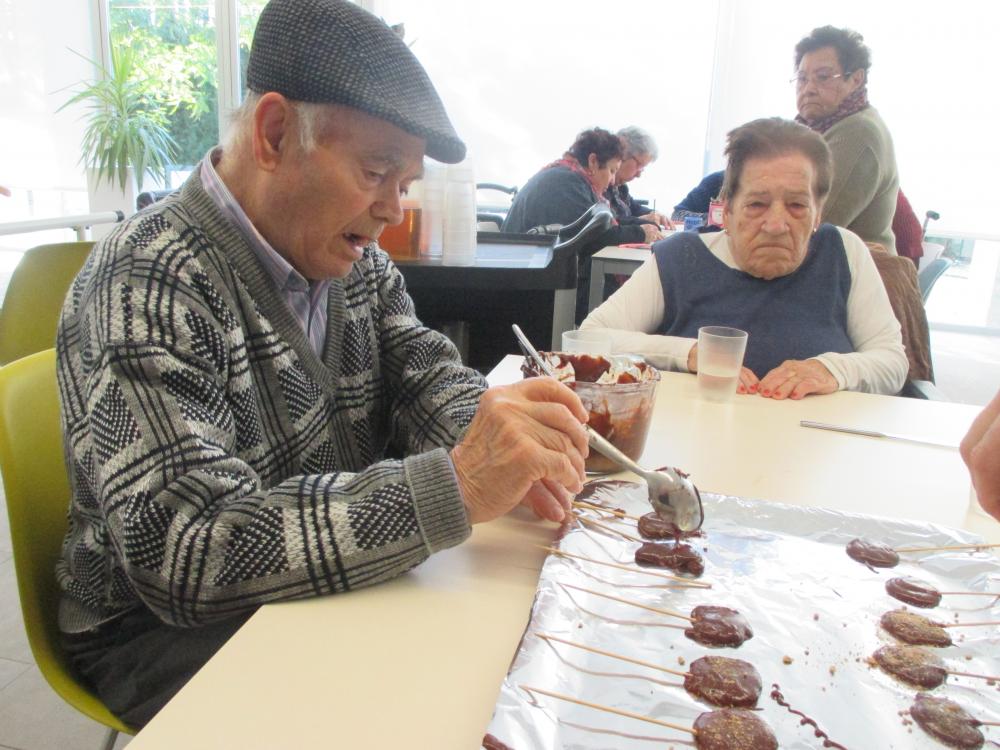Mireu qué bé ens ho hem passat aquest matí preparant piruletes de xocolata i llepolies per a la festa de demà. Hem gaudit d'un matí ben dolcet en bona companyia!