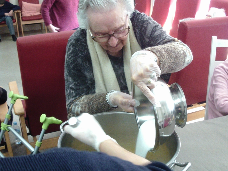 Almenys un cop al mes intentem realitzar un taller de cuina. Aquesta vegada hem preparat el tradicional coc casolà i ens l'hem menjat per berenar aprofitant la celebració de la festa d'aniversaris dels nostres residents.