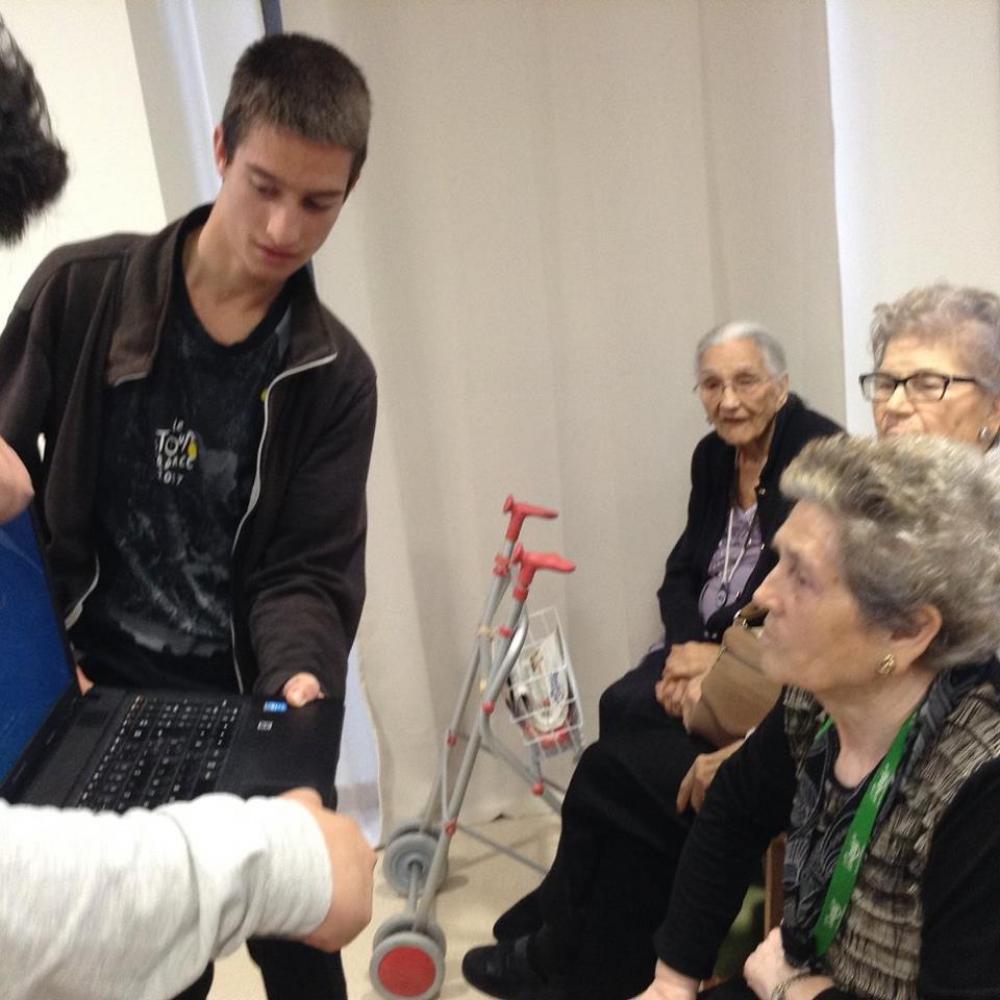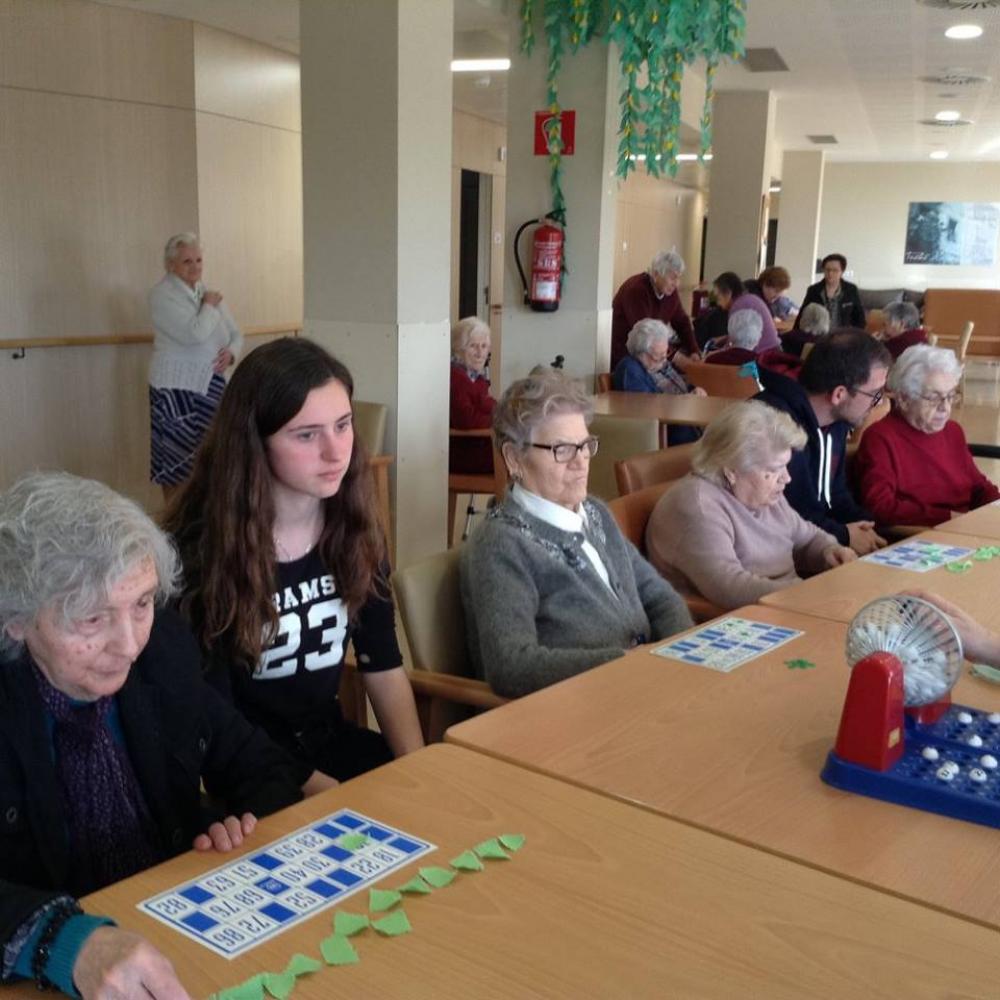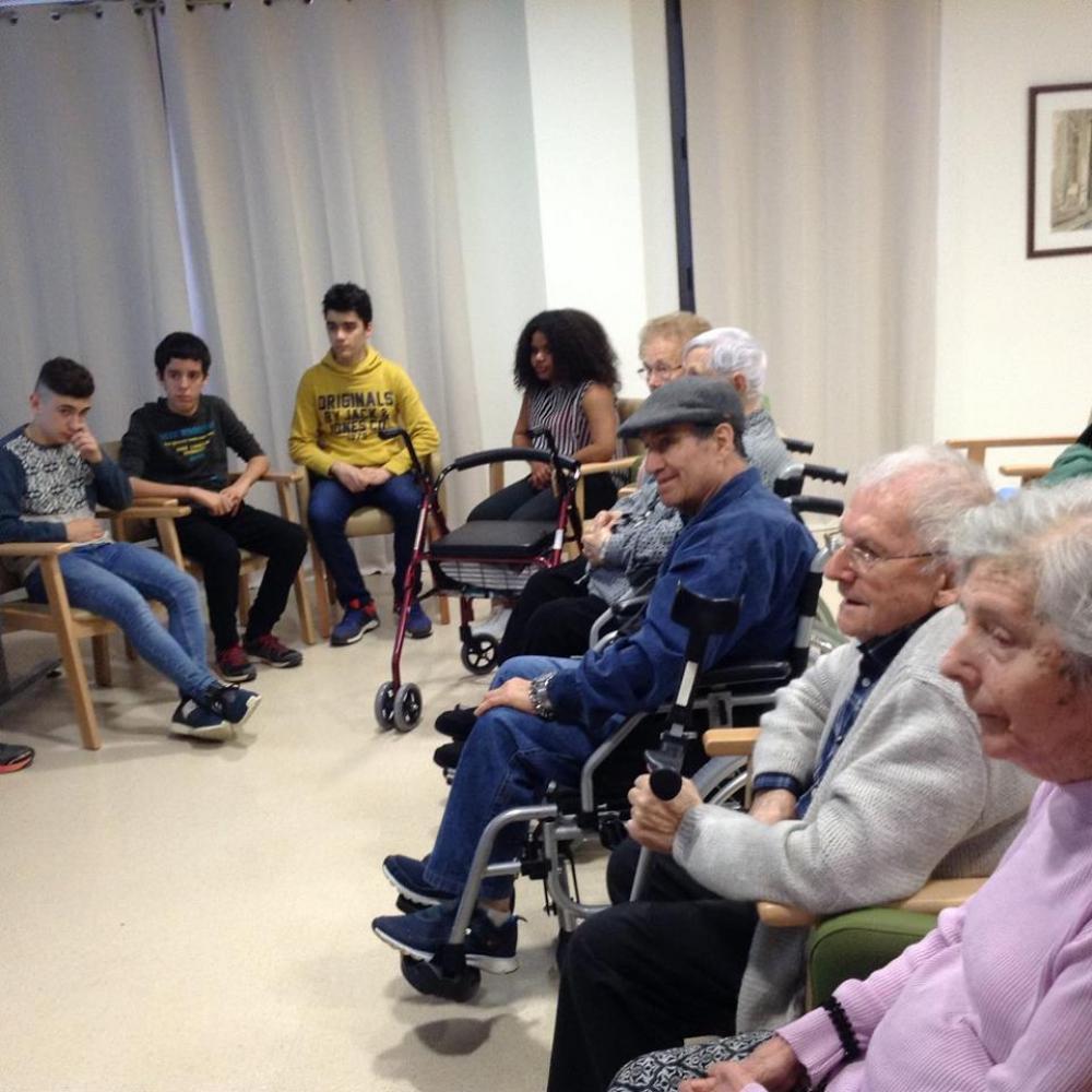 Els nois i noies de l'IES d'Auro i de l'Escola Llissach de 3r d'Eso, han iniciat un projecte comunitari amb les seves respectives classes en el que venen a compartir activitats amb els usuaris de la residència.