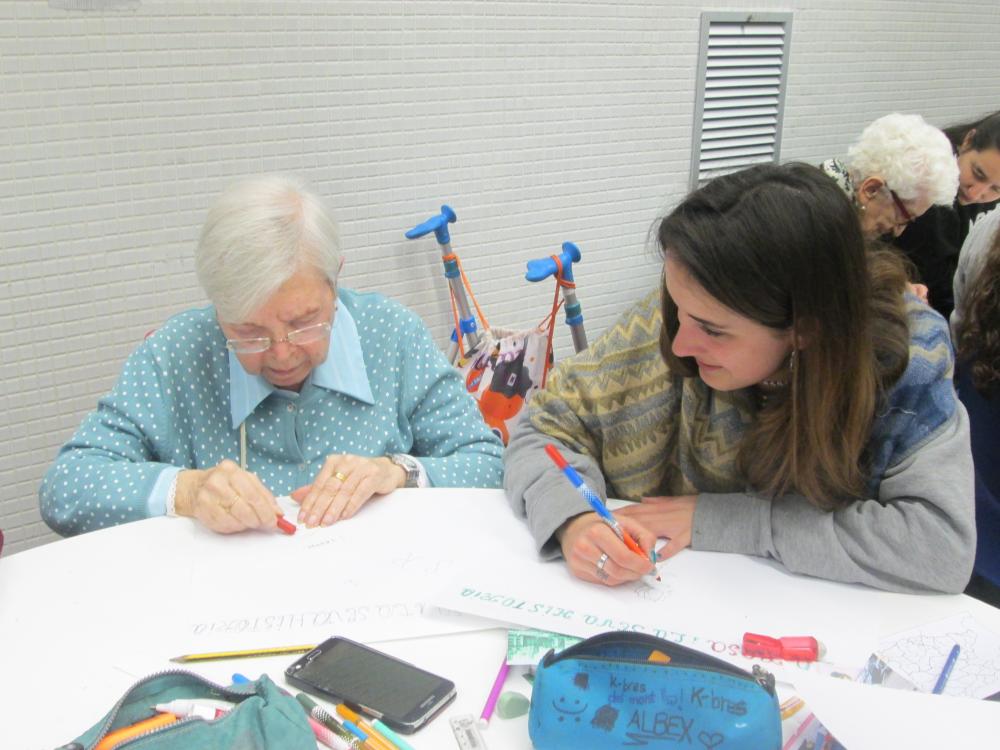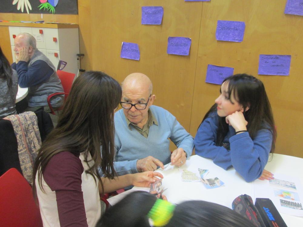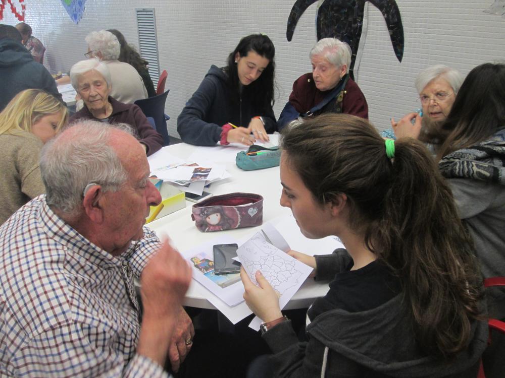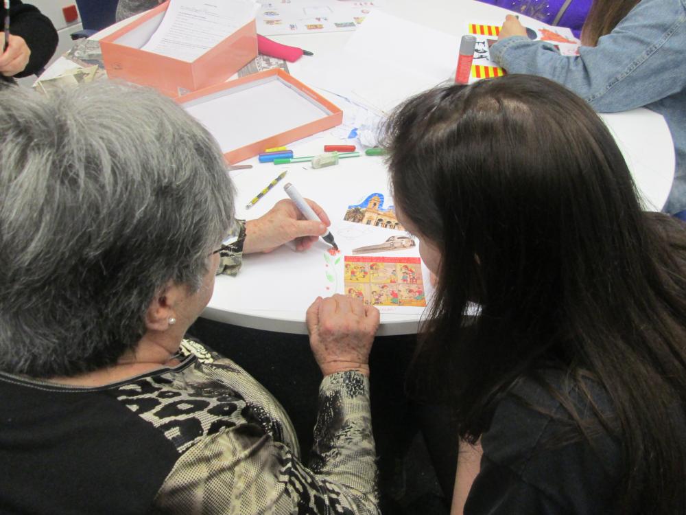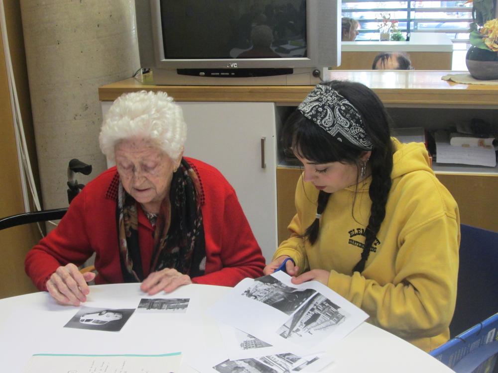 Divendres vàrem fer la tercera sessió del projecte intergeneracional. Els joves d'integració social juntament amb els avis van fer el muntatge gràfic de les seves històries de vida