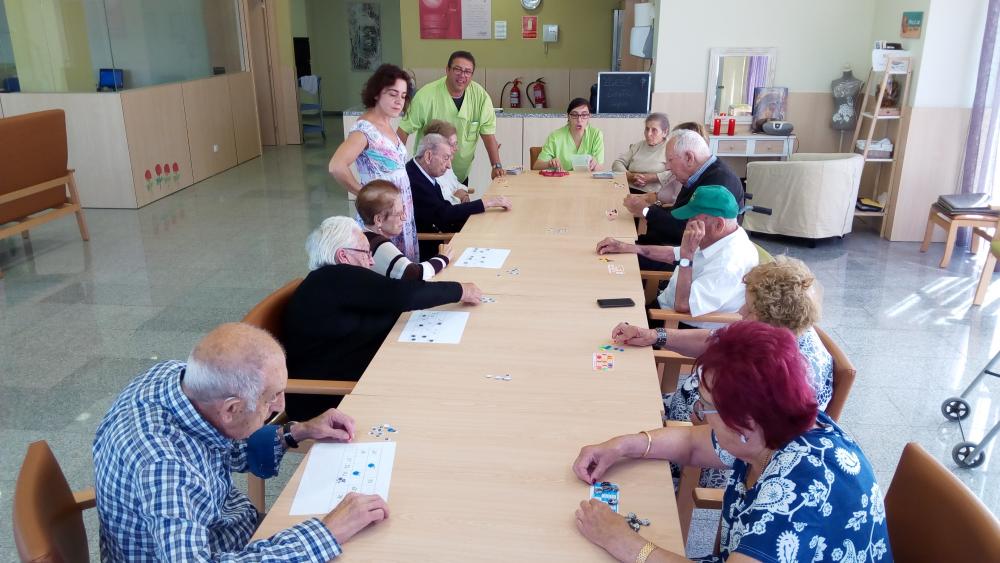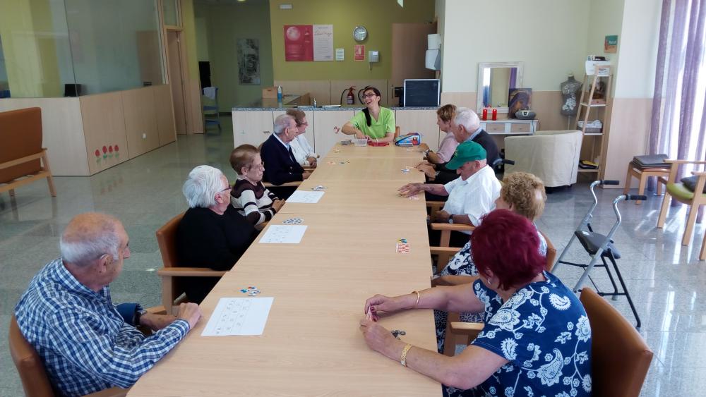 Vam dinar tots junts. Al llarg de la tarda vam estar gaudint del bon temps al jardí i, finalment, vam jugar al bingo.
