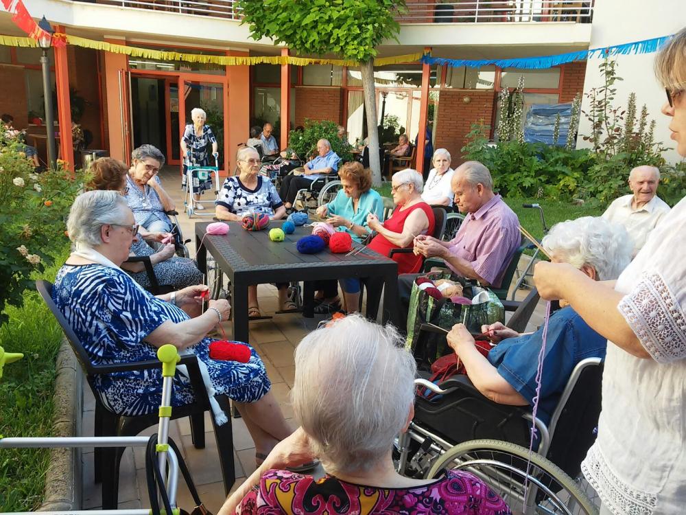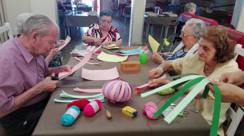 A la residència Les Garrigues ja estem escalfant motors durant tota la setmana per a la celebració de la nit més curta de l'any. Per això, hem fet diversos tallers de guarniments festius per al jardí. Amb llanes de colors, hem fet ulls de Déu, i amb cartolines, uns bonics fanalets.