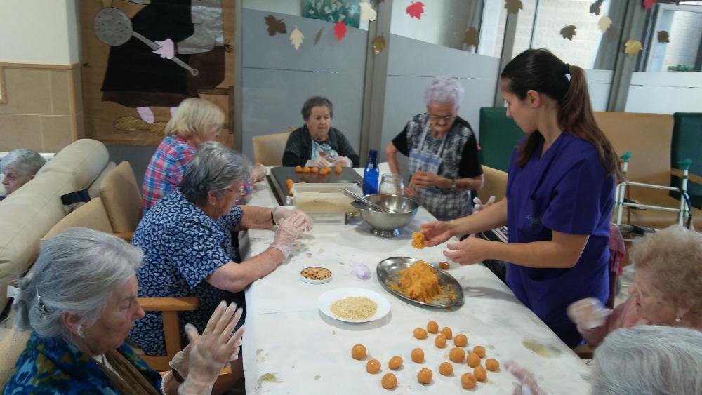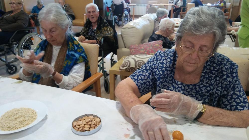 Aquesta castanyada, acompanyada del bon temps, els nostres residents han elaborat els seus panellets, començant per trencar l'ametlla, netejant-la i finalitzant amb l'elaboració de la massa...qué bons estaven!!