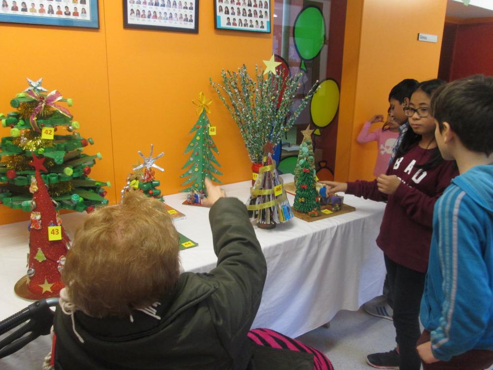 L'escolam Sagrat Cor ens ha convidat a veure la seva exposició d'arbres reciclats fets per les famílies. Els nens de 6è ens han fet la visiat i expicació, al acabar ens hem fet una foto amb el patge reial de l'escola.