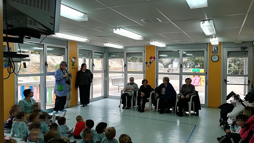 Els nens han gaudit del conte que els hi haviem preparat i l'han escoltat desde la tranquil.litat que transmeteixen els majors.