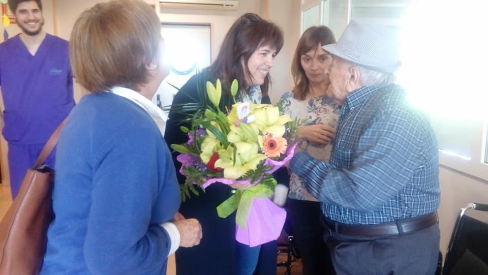 Finalment, Núria Ventura Brusca, alcaldessa d'Ulldecona, acompanyada de la regidora Cati Brusca, li han fet entrega d'un bonic ram de flors i un pin. I la seva família ha portat cocs per berenar.