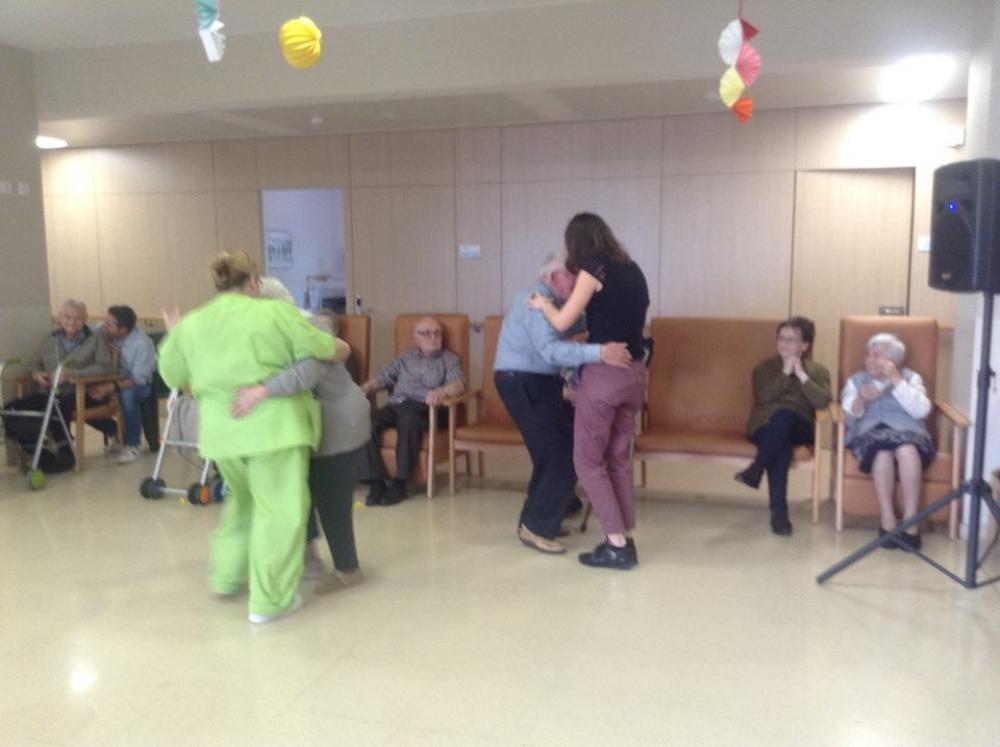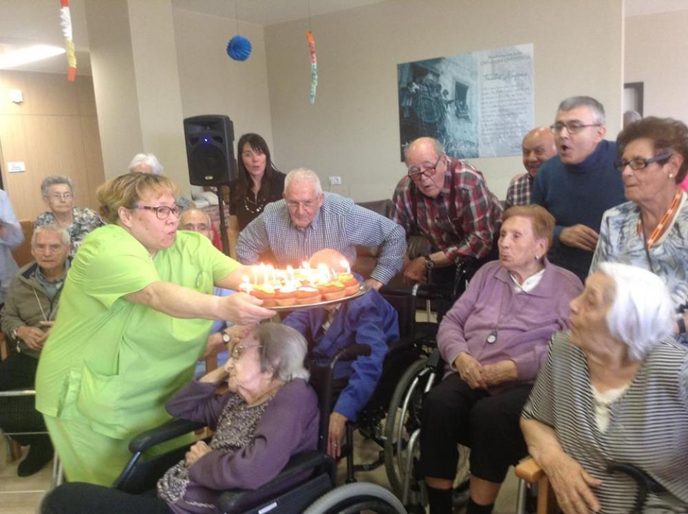 Després, els avis que havien fet anys i les seves famílies, vam bufar junts les espelmes. Aleshores vam berenar un pastís boníssim.