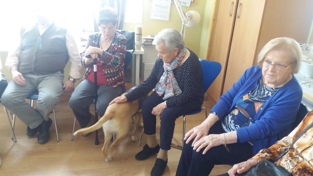 Ahir dilluns, va començar la teràpaia amb gossos, i alguns dels nostres residents van tenir l'oportunitat de coneixer a Poma, la gossa que vindrà cada dilluns a trebalar amb nosaltres. Van gaudir d'una estona molt agradable.