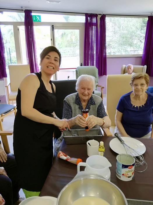 Els nostres residents en el marc de les activitats de la Unitat de convivència el.laboren en els tallers de cuina els postres que després de dinar gaudeixen.