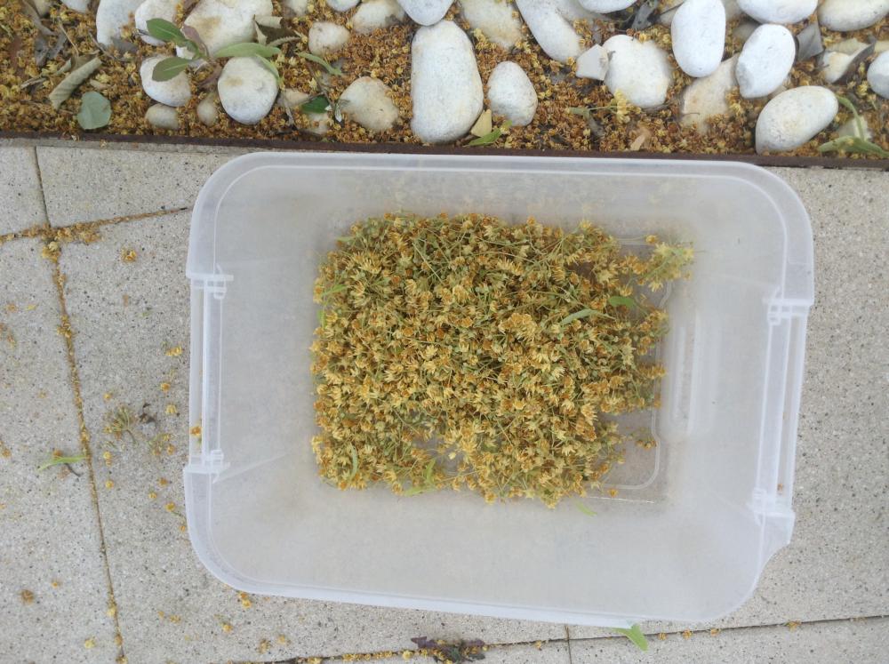 Aquests dies, aprofitant que els arbres estan ben florits, hem estat recollint til·la per assecar-la i poder fer-ne infusions més endavant!