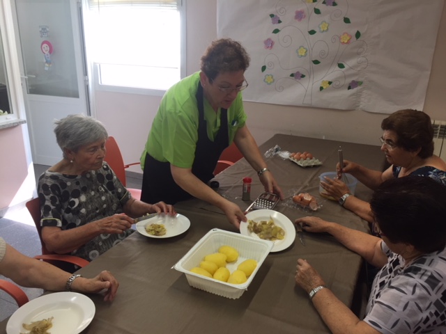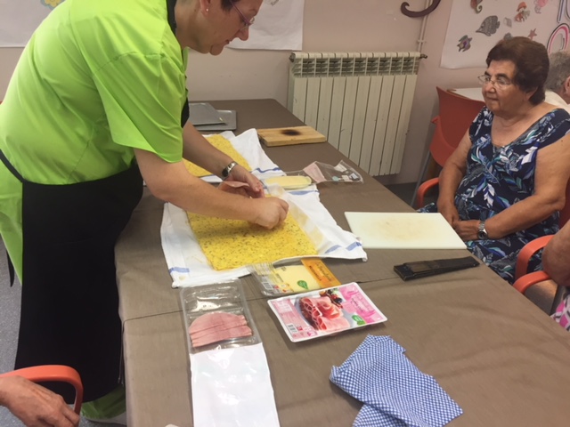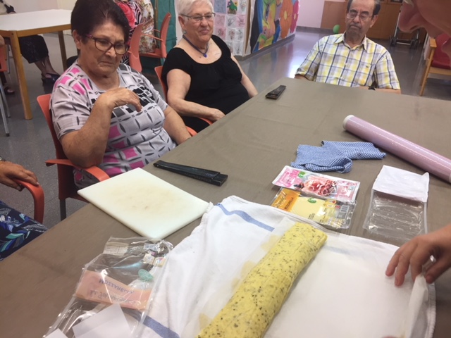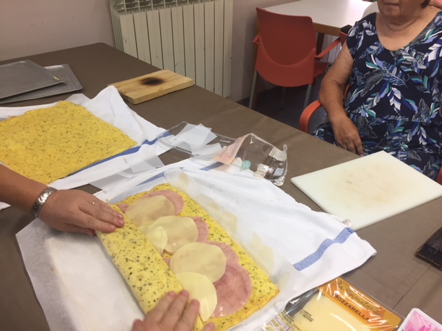 Nuestro taller de cocina de Agosto, liderado por Conchi, ha sorprendido a todos los usuarios y trabajadores del centro. Brazo Gitano salado. Huevos, patata, parmesano, jamon, queso...todo cocinador al horno sin nada de grasa. Nuestros abuelos han pelado y rallado patatas, batido huevos,n preparado el jamon..y por supuesta lo que más les ha gustado es... comérselo!! Estaba buenísimo!!!!