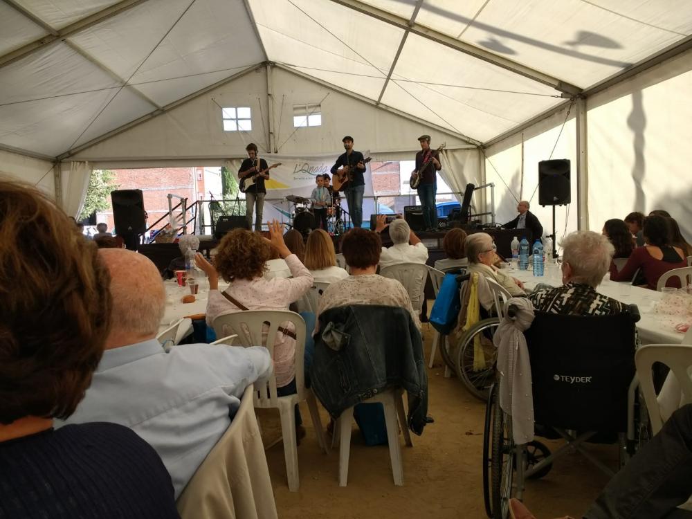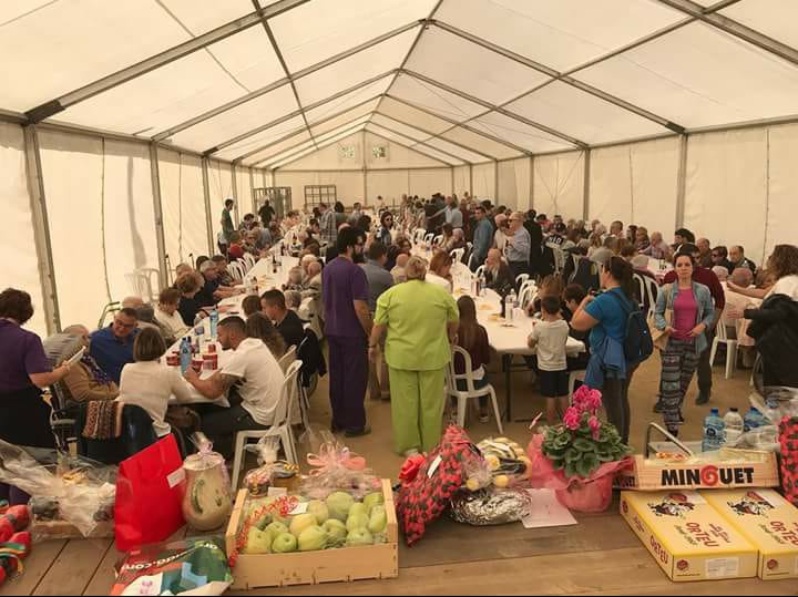 Com cada any, aquest 7 d'octubre hem celebrat el Dinar Popular que organitzem des de la Residència Les Garrigues, amb el suport i la col·laboració de diverses entitats i particulars, ente ells l'Onada, l'Ajuntament de les Borges, el Consell Comarcal de Les Garrigues i els Envelats Vall. Aquest any el dinar consistia en un pica-pica previ i una fideuà que van cuidar les cuineres del centre i que va quedar boníssima. Després vam tenir els parlaments de les autoritats convidades, el sorteig dels regals cedits per les entitats col·laboradores, i vam finalitzar el dia amb l'actuació del grup Plou, que ens va fer ballar i gaudir amb la seva música.