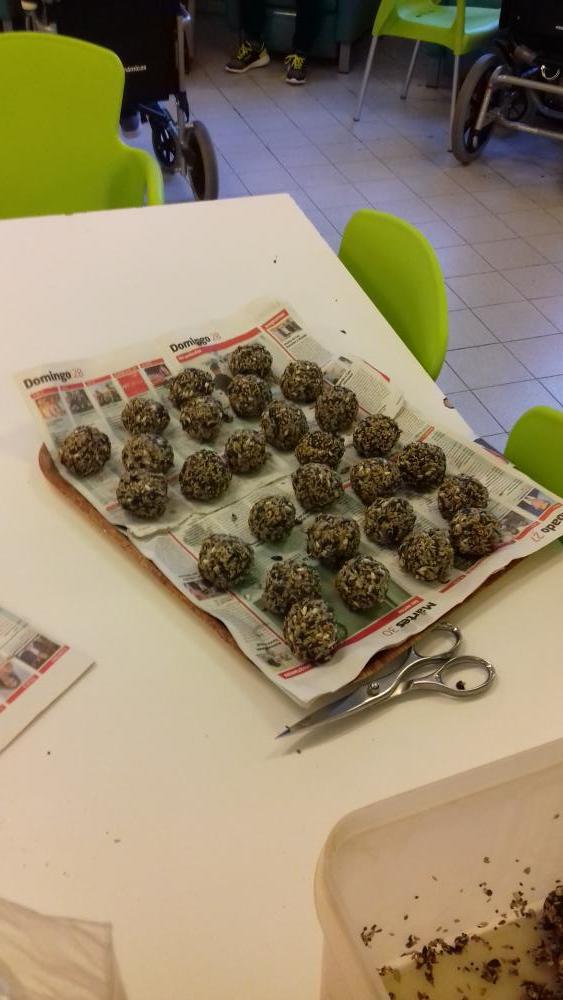 Amb aquestes boles tindrem per donar menjar als nostres ocells d'aqui prop al parc de collserola, i tambè les posarem a la venda per un preu molt assequible, i amb els beneficis farem donació per al dia de la marató d'aquest any. Us anirem informant!