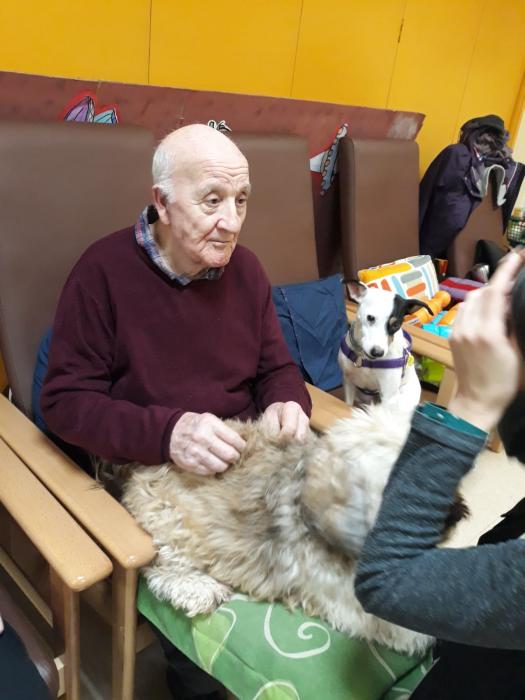 Com cada mes, continuem amb una de les sessions que més gaudeixen els usuaris del centre: La teràpia assistida amb gossos!